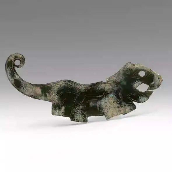 ⑤商代玉虎设计具有不同的角度取像,此类片状虎形佩为侧面取像,(方形玉料为正面取像;柱形玉料为正侧面共用),充分呈现造型设计与玉料形状相互对应的关系。