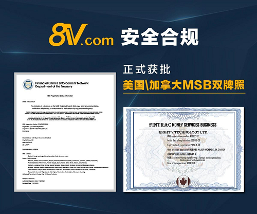8V取得美国加拿大MSB双牌照 为全球化布局设立重要里程碑