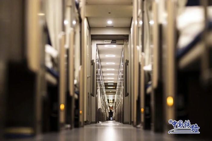 铺位窗帘边缘装有4块吸铁石,能与包厢两侧墙壁严密贴合,旅客可享受独立单间。此外,列车进一步优化了减振降噪设计,使旅客的睡眠环境更加舒适。下铺设置的行李空间可放置6个17英寸标准行李箱或2个超大行李箱。