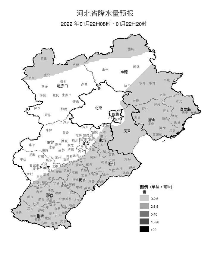 今天下午到夜间,全省阴有小雪,其中石家庄、邢台西部、邯郸西部有中雪,局地有大雪。