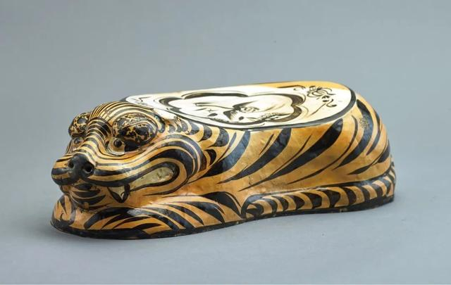 陶瓷虎枕是金代盛行的一种很有特色的生活用具,大致有白地和黄地两种,主要产地在山西、河南一带。从考古出土来看,它的使用范围集中于黄河流域。虎枕有着吉祥、辟邪的寓意,晋代葛洪的《肘后备急方》中就主张虎头枕可以治疗睡眠相关的疾病。