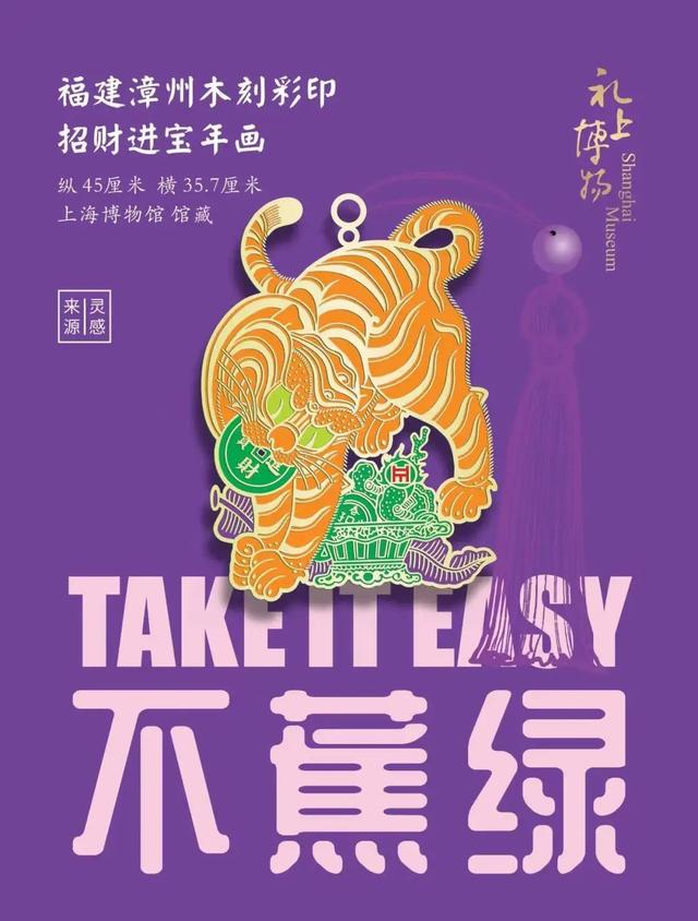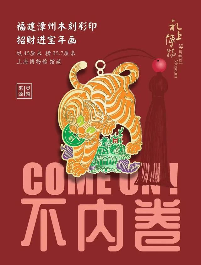 老虎身姿摇摆,呼之欲出;虎尾外卷而又上翘的细节刻画,尤为生动。结合当下热词,撷趣虎尾“不内卷”。借此福虎创意书签,上海博物馆邀你一起,向上向美,拥抱未来!