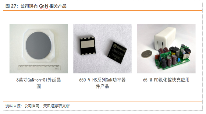 积极推进GaN业务发展,公司已取得多项突破。公司积极推动GaN业务发展。在GaN外延材料方面,公司基于自身掌握的业界领先的8英寸硅基GaN外延与6英寸碳化硅基GaN外延生长技术,积极展开与下游全球知名晶圆制造厂商、半导体设备厂商、芯片设计公司以及高校、科研机构等的合作并进行交互验证,开始签订GaN外延晶圆的批量销售合同并陆续交付;在GaN芯片方面,公司已陆续研发、推出不同规格的功率芯片产品及应用方案,且已推出数款GaN功率芯片产品并进入小批量试产,并与知名电源、家电及通讯企业展开合作,进行芯片系统级验证和测试,开始签订GaN芯片的批量销售合同并陆续交付。
