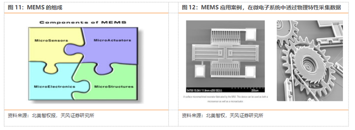 MEMS采用机械结构,是当下传感器主要发展方向之一。MEMS微电机系统,将半导体技术的多功能性与机械结构的功能相结合,以微米或纳米级别的结构,应用在包括MEMS麦克风、MEMS压力传感器、MEMS陀螺仪、MEMS湿度传感器等。MEMS可应用在惯性、压力、声学、磁力、温/湿度、气体等不同类型的应用领域,通常MEMS采用机械结构,通过感测到的外部型号来控制运动方向,进而改变电容之间的距离;透过机械装置所发生的物理变化,转换成电子信号并数据化,完成数据采集后就可以传送至后端的运算芯片进行计算。MEMS组成包含有微传感器、微结构、微电子、微致动器等,包含微电子、物理等技术。