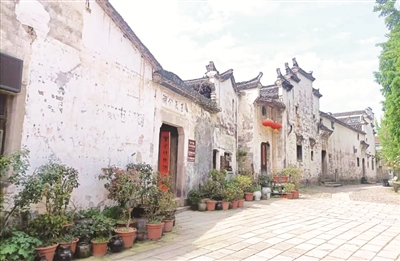石板路在脚下延伸,我放慢了脚步,静静地观赏着这具有上千年历史的古村落,弄堂、街道、古井、沟渠,皆布局合理。风火山墙、马头墙毅然耸立,砖雕木雕复杂多样,四合院、大天井、砖木结构、屋面双披,自成特色。那比比皆是的古雕刻、古壁画、古匾额,技艺独具匠心,尽显江南建筑之精华。