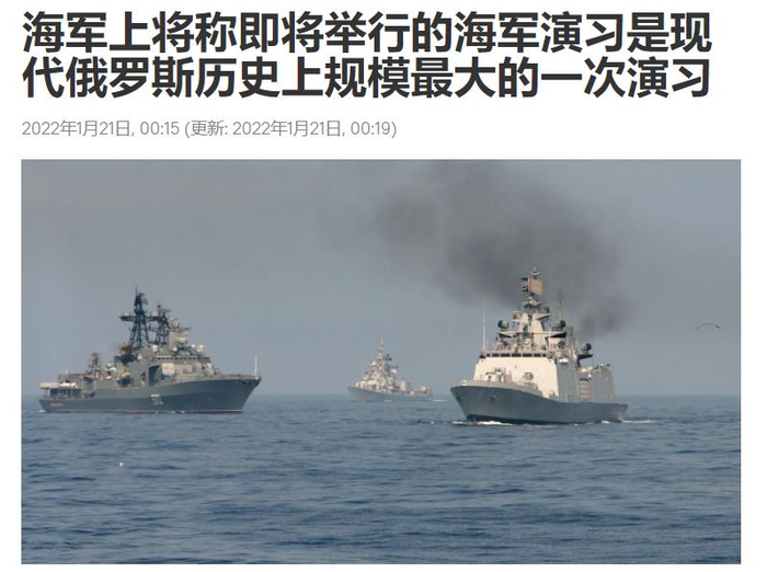 路透社20日的报道则更加直接称,俄罗斯海军将在本月和下月从太平洋大西洋举行一系列涉及所有舰队的全面演习,这是美俄因乌克兰局势军事活动激增的最新表现。演习将在与俄罗斯直接相邻的海域进行,将涉及地中海、北海、鄂霍次克海、东北大西洋和太平洋相关海域。