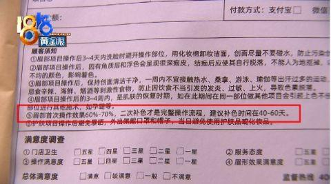 杭州市滨江区栖桐美容工作室 姚经理:眉毛本来就有一个(免费)二次补色的,我们有一个精修服务,为什么我们会有个(顾客服务单)如果第一次做的特别深,第二次会很难改,所以我们第一次都是宁浅勿深,宁细勿粗的。