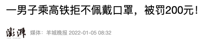 其实,在高铁上不愿佩戴口罩并非孤例。就在本月初,一男子乘坐北京西开往深圳北的G79次列车时拒绝佩戴口罩,经深圳铁路公安处乘警多次劝说,仍出言不逊,拒不佩戴口罩,最终根据《中华人民共和国治安管理处罚法》,深铁警给予其罚款200元的行政处罚。