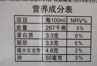 2011年,卫生部修订的《预包装食品营养标签通则》中指出,脂肪、碳水化合物、能量、钠的含量值以及营养素参考值(NRV)的百分比都是必须标识的。其中营养素参考值指的是营养素含量占每日膳食推荐参考值的百分比。