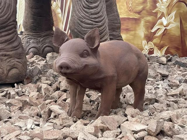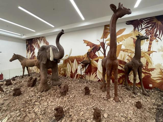 这些栩栩如生的巧克力动物雕塑都是由巧克巧蔻的3位师傅用10吨巧克力原料,包含黑巧克力、牛奶巧克力和白巧克力,前后花了数月时间制作而成。就连动物踩在脚下的地面都是由巧克力铺设而成。