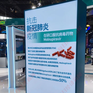 第四届进博会上,默沙东新冠口服药Molnupiravir展板。