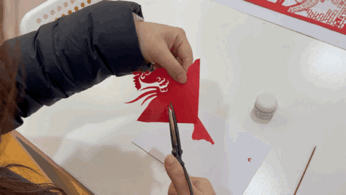 采访现场,她展示了上海剪纸特色阴阳剪的作品“鸡”(吉祥如意)和立体“春”字,边剪边介绍说上海剪纸的技法核心特点是对图案细腻的钻研,以及对线条的高标准,鸡的肚子的弧度、每一个毛发的粗细,布局,失之毫厘,谬以千里。