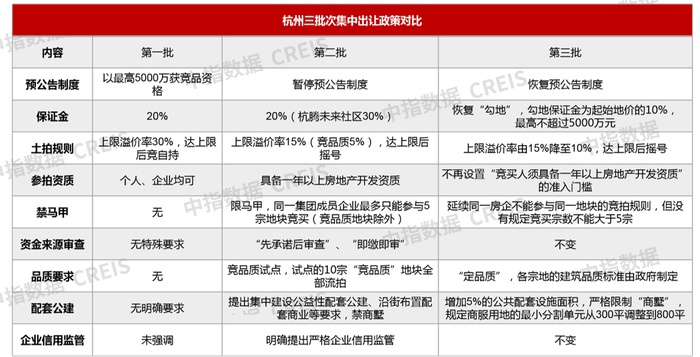 由于下半年行业整体下行,二批次集中拍地成交惨淡,第三批次的土拍规则适度放松,主要从让利房企、降低门槛等提高房企参拍积极性方面调整,包括恢复勾地制度、降低溢价上限、不限参拍资质要求,竞品质改为定品质等。