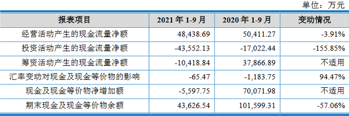 2021年1-9月,沃得农机经营活动产生的现金流量净额为4.84亿元,同比下降3.91%。