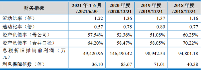 2021年6月末资产负债率64.20%