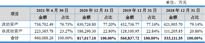 截至2017年12月31日、2018年12月31日、2019年12月31日、2020年12月31日和2021年6月30日,沃得农机资产总额分别为66.38亿元、53.31亿元、56.08亿元、81.70亿元和96.01亿元。