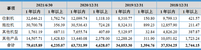 2018年、2019年、2020年和2021年上半年,沃得农机一年以上应收账款余额占应收账款余额比例分别为6.44%、7.09%、9.95%和9.09%,一年以上应收账款坏账准备余额占一年以上应收账款余额比例分别为50.70%、51.06%、59.60%和61.29%。