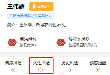 另据公开数据,王伟耀存在3341条周边风险,其任高管的沃得国际、沃得重工、沃得机电被法院列为失信被执行企业。