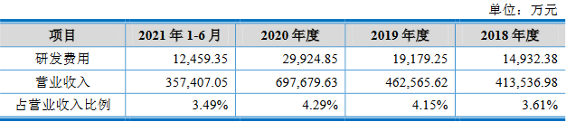 2017年、2018年、2019年、2020年和2021年1-6月,沃得农机研发费用分别为1.36亿元、1.49亿元、1.92亿元、2.99亿元和1.25亿元,占营业收入的比例分别为3.14%、3.61%、4.15%、4.29%和3.49%。