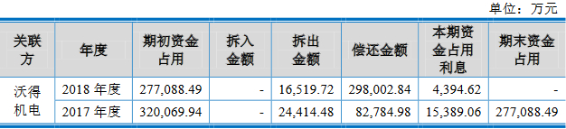 招股说明书显示,沃得农机长期与关联方资金拆借。
