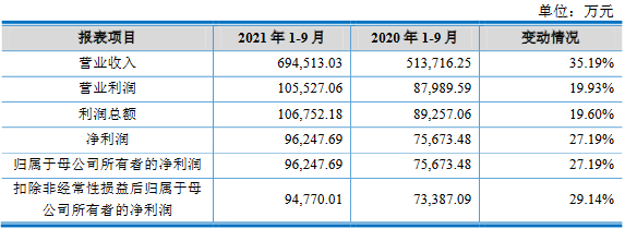 2021年1-9月,沃得农机实现营业收入69.45亿元,较2020年同期增长35.19%;归属于母公司所有者的净利润9.62亿元,较2020年同期增长27.19%;经营活动产生的现金流量净额为4.84亿元,同比下降3.91%。