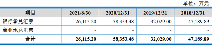 2021年6月末应收票据2.61亿元