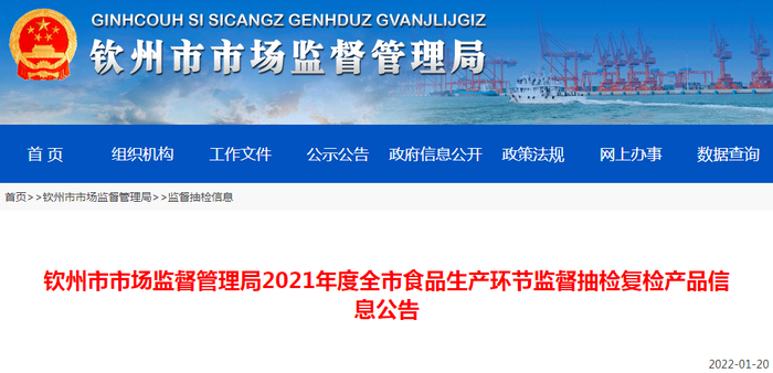 中国质量新闻网讯 近日,广西钦州市市场监督管理局发布2021年度全市食品生产环节监督抽检复检产品信息公告。据公告,钦州市市场监督管理局组织2021年度全市食品生产环节监督抽检共956批次,其中抽检的一个不合格批次,生产企业(桂林市顺昌食品有限公司)申请了复检。复检具体情况如下: