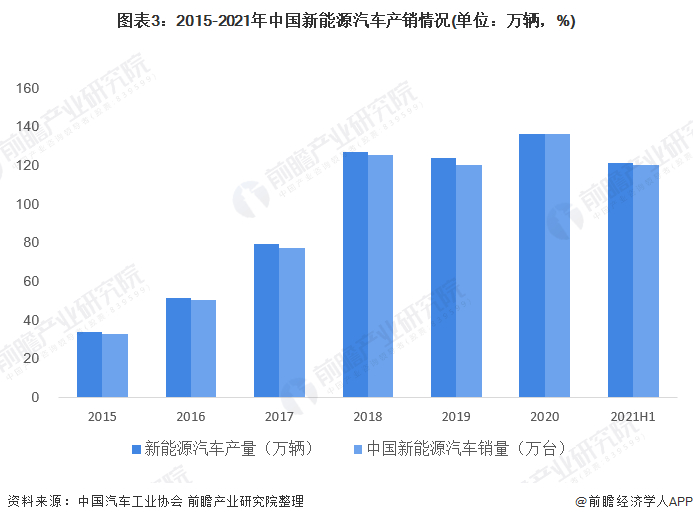 以新能源汽车产销情况为例,2021年上半年,新能源汽车累计销量已与2019年全年水平持平,其中纯电动汽车超过100万辆,新能源汽车渗透率也由2021年初的5.4%提高至2021年上半年的9.4%,其中6月的渗透率已超过12%,说明新兴动能逐步扩大。2021年上半年,新能源汽车产销量分别为121.5万辆和120.6万辆,同比分别增长200.6%、201.5%。新能源汽车市场的扩张将促进萤石需求的快速增长。
