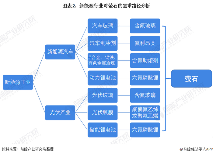 近年来,随着新能源工业的兴起,锂离子动力电池、锂离子储能电池激增。六氟磷酸锂作为是近中期不可替代的锂离子电池电解质,对于氟化工的需求激增,而萤石又是氟化工最重要的原材料之一,未来其需求十分可观。