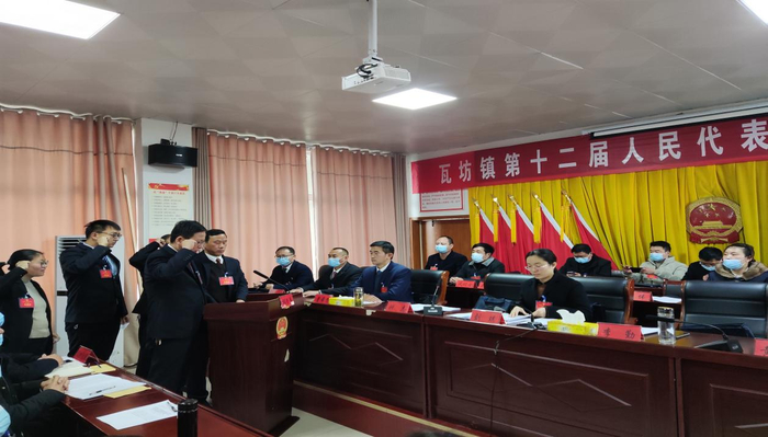 1月23日,大会严格按照《中华人民共和国地方各级人民代表大会选举法》,并根据本次大会第一次全体会议通过的《瓦坊镇第十二届人民代表大会第一次会议选举办法》的有关决议,依法完成本次人代会的选举任务。钟志全票当选为瓦坊镇人大主席,李勤全票当选为瓦坊镇人民政府镇长,盛荣连、赵海波、吴伟3名同志全票当选为瓦坊镇人民政府副镇长。