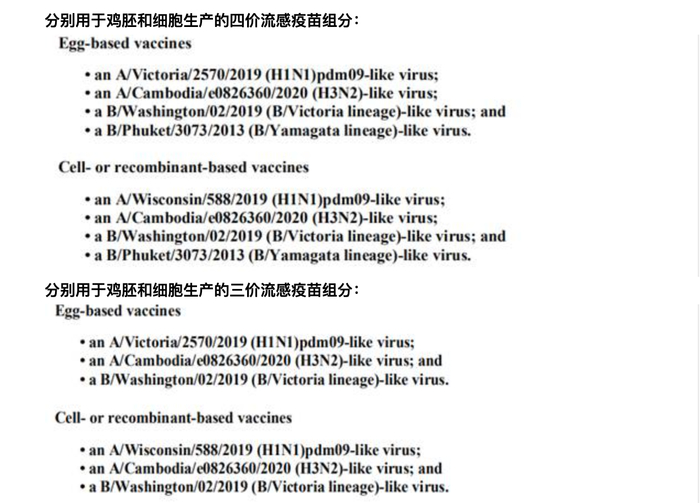 世卫组织推荐的2021—2022年度北半球流感疫苗毒株