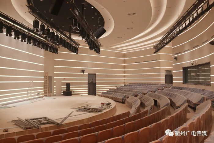近日,记者从智慧新城管委会了解到,衢州“两中心”大剧院内部灯光、音响、舞台机械等设施进入最后调试阶段,大剧院已初步满足使用条件。