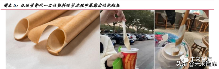 随着纸吸管的投入使用,消费者开始不断反馈糟糕的使用体验和对门店运营方的 负面评价,部分消费者甚至因此降低了消费频次,同时,初期纸吸管及 PLA 吸管供 应短缺带来的溢价在两者产能的快速提升后逐步平抑,且两者价差也随之降低,后期 PLA 吸管与纸吸管单根价差已缩小至数分钱,最终商家考虑到对销售量的影响和成 本差距的缩小,用 PLA 吸管替代纸吸管与一次性塑料吸管不再有此前那么大的成本 阻力。