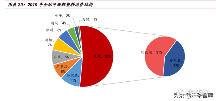 从更长远的视角看,按照 L.Shen 等人在文献中通过行业专家访谈汇总的观点, 在目前几类生物降解塑料与普通石油基塑料存在的性能差距下,31%是生物降解塑料 可推算出的最大渗透率。根据这一最大渗透率以及 2021 年的全球塑料产量测算,远 期全球塑料中最多将有超过 1.20 亿吨/年的产能将被生物降解塑料取代,按 1/4 比例 折算给国内带来超过 3000 万吨/年的生物降解塑料需求。