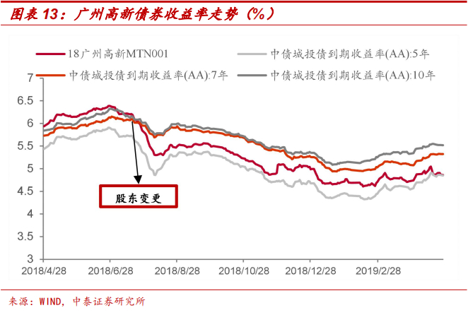 2018年7月26日,广州高新区投资集团有限公司发布关于控股股东、公司章程、董事、监事变更的公告,公司控股股东由原来的广州开发区人民政府国有资产监督管理局变更为广州经济技术开发区管理委员会,从相关债券的收益率来看,该种股权变动对估值的影响较小。