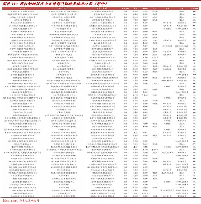 城投股权划转背后的平台资质变化是投资关注的核心。对于国企改制、行政区划调整、区域国有资产统筹管理、规范城投平台投融资行为等原因形成的股权变更,如果后续政府对平台的支持力度加大,政策及资源倾斜加强,或对平台的信用评级提升有所帮助,对平台公司再融资能力边际改善起到一定作用。