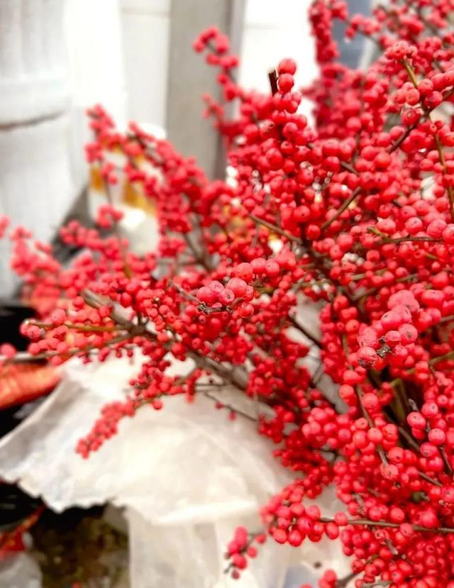 北美冬青的花语为“顽强的生命力,火热的热情”,是年宵花中的爆款,形状端庄、规整,一簇簇红艳的小果子密密地分布在枝条上,再搭配一只文艺花盆,非常适合摆在家里装点节日气氛。