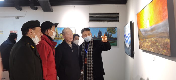展览现场,右二为中国作协党组原书记、副主席,全国人大常委、科教文卫委员会副主任金炳华