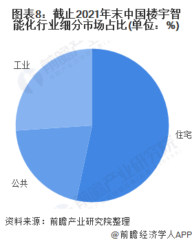 细分领域占比方面。2021年,住宅建筑领域智能化规模占比最高,超过50%;其次是公共建筑,占比约为20%;同时工业建筑楼宇智能化市场占比已经超过25%。住宅建筑领域智能化规模占比最高,其主要原因是目前各地房地产开发商所开发的楼宇智能化项目普遍受到购房者的青睐,北京、上海、广州、深圳等一线城市的高端住宅项目对国内房地产市场示范作用明显。