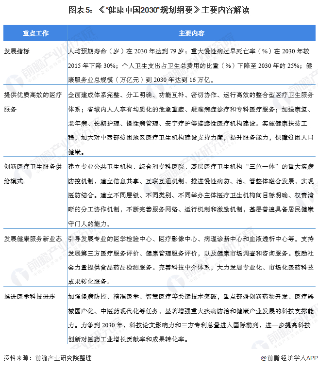2016年10月25日,中共中央、国务院发布《“健康中国2030”规划纲要》,明确提出发展健康产业,引导建立血液透析中心等专业医疗服务机构,加强慢性病管理,促进健康产业发展。