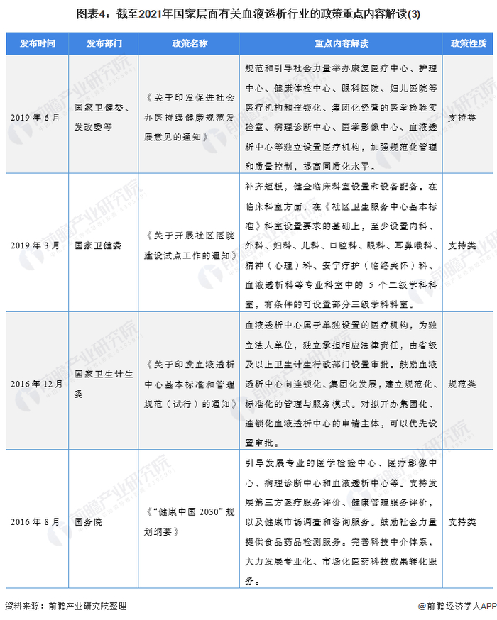 更多行业相关数据请参考前瞻产业研究院《中国血液透析行业发展前景预测与投资战略规划分析报告》,同时前瞻产业研究院还提供产业大数据、产业研究、产业链咨询、产业图谱、产业规划、园区规划、产业招商引资、IPO募投可研、IPO业务与技术撰写、IPO工作底稿咨询等解决方案。