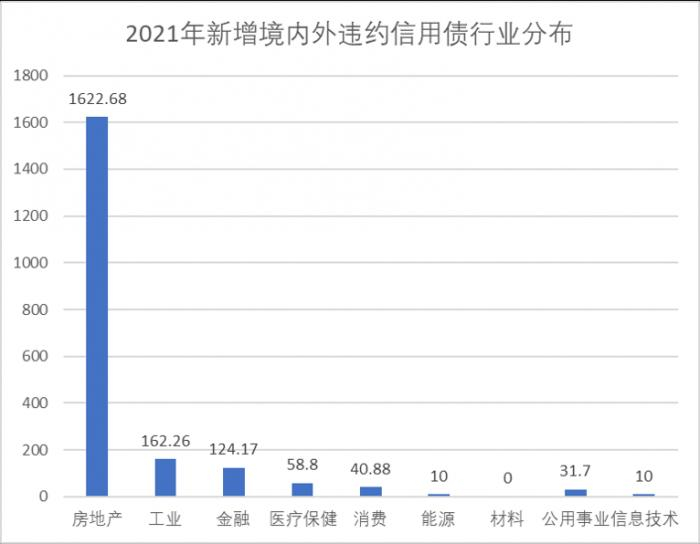 从违约债券所属行业(以Wind一级行业分类口径)来看,2021年境内外新增信用债违约的发行主体主要集中于房地产行业,尤其在美元债市场出现大量房企逾期。