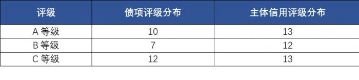 截至2021年末违约信用债中C评级债券只数占比最高。具体数据而言,债项评级A评级(包括AAA、AA+、AA、AA-、A+、A)债券共计10只,占比25.64%,较2020年的31%有所下降;B评级(BBB、BBB-、BB、B)债券共计7只,占比由2020年的11%上升至17.95%;C评级债券共计12只,占比30.77%。值得一提的是,4只信用债违约前的发行主体评级在A级以上,占比为10.26%。