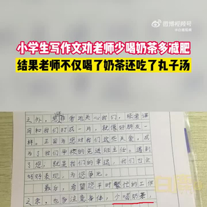 为老师操碎了心!小学生写作文嘱咐老师少喝奶茶注意减肥