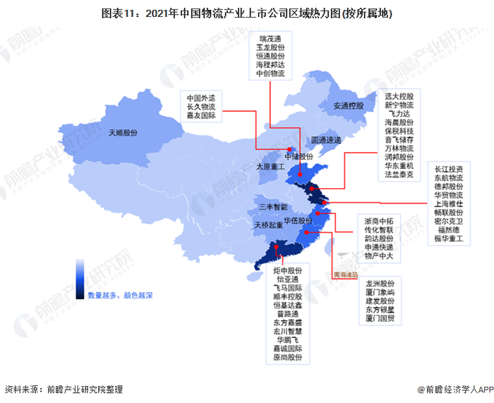 物流行业的上市公司中,较多公司的物流业务布局重点集中在华东华北地区,大多数公司主要布局在境内,境外布局较少。