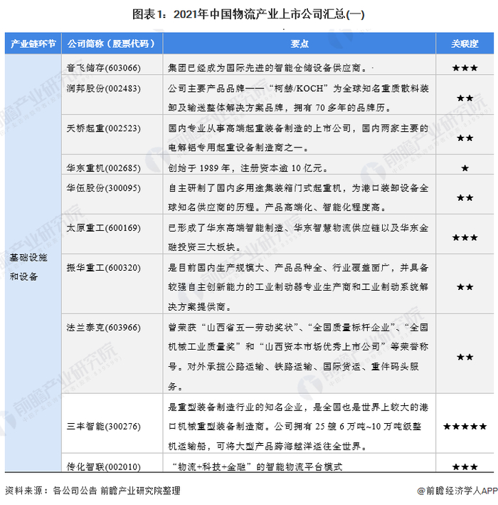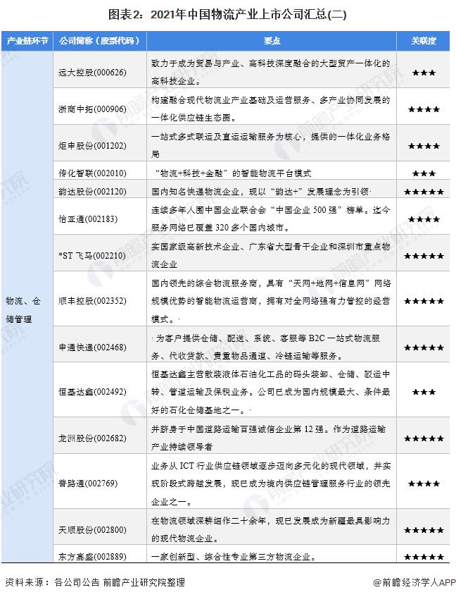 1、物流产业上市公司汇总