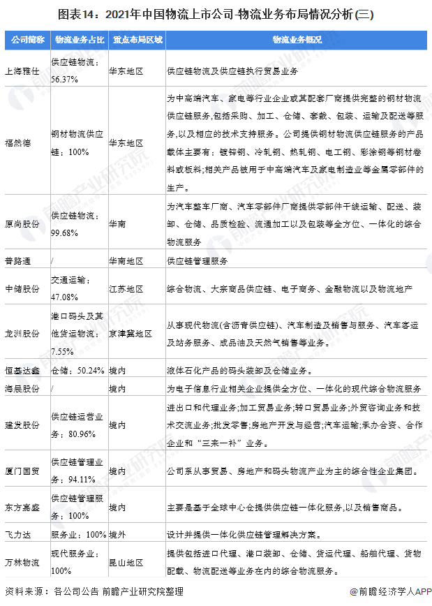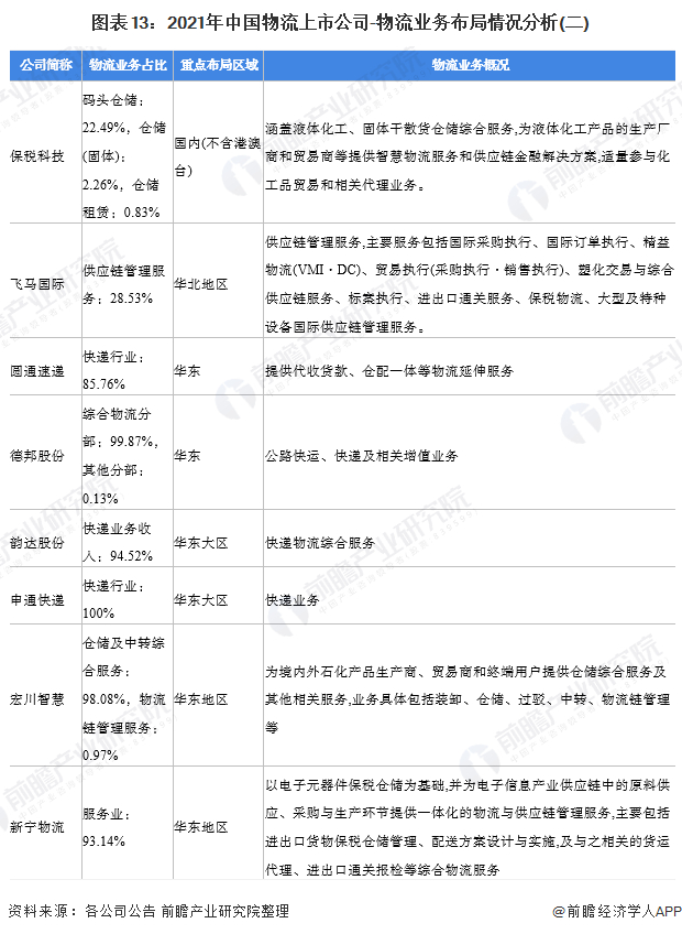 原标题:【最全】2022年物流行业上市公司全方位对比(附业务布局汇总、业绩对比、业务规划等) 来源:前瞻产业研究院