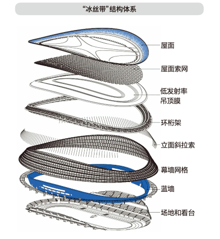 有人曾这样形象地描述冰丝带诞生的四个阶段:精耕细作、拔地而起、编织天目、丝带飞舞。