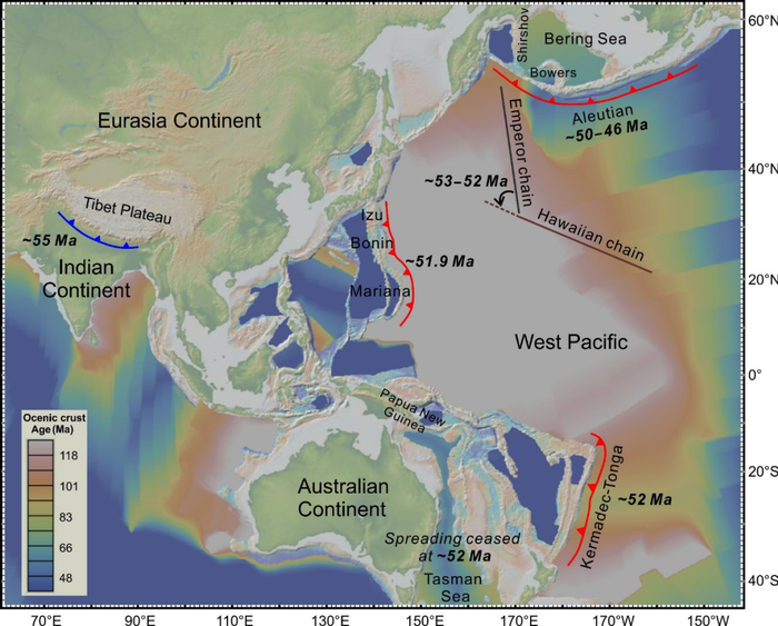 沿汤加—克马德克俯冲带是大约5200万年前,太平洋转向形成的。在大约700万年前,该俯冲带出现重大转折,板片后撤,形成汤加弧后盆地。