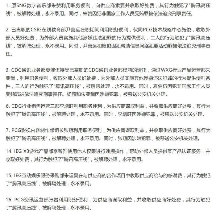 “鹅厂”出手反腐:10多人被移送公安,近70人被辞退,13家企业被“拉黑”